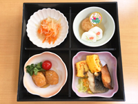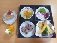 イースト・ヴィレッジの食事は、管理栄養士をはじめ、専門の調理スタッフで提供します。 食事はイースト・ヴィレッジでの生活において重要なポイントと考え、入居者に満足していただけるサービスを目指します。 季節ごとの節句やお祝い事を大切にし、旬の食材を使用して、個々に合わせた飽きの来ない食事提供を行います。